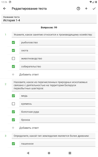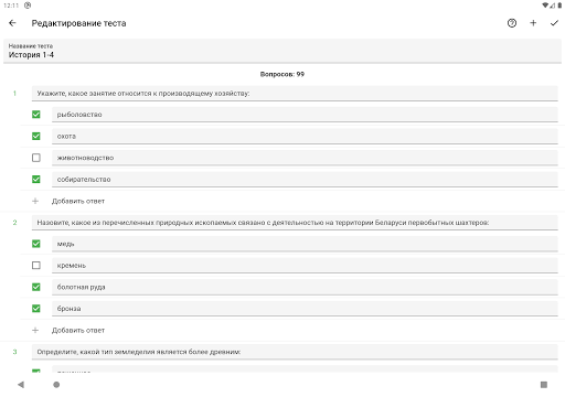 Так же можно составлять свои собственные тесты с одним или несколькими вариантами ответов.