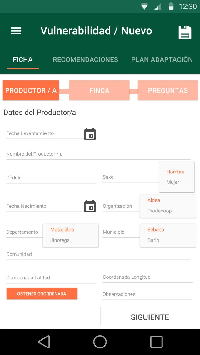 Registro de datos relacionados a vulnerabilidad, plagas, enfermedades y clima