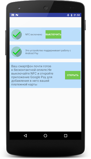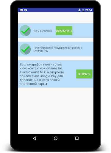 Бесконтактная оплата - современная и удобная функция многих смартфонов. Приложение определяет возможности бесконтактной оплаты для вашего смартфона. При наличии возможностей бесконтатктной оплаты приложение предложит к установке или настройке Google Pay.