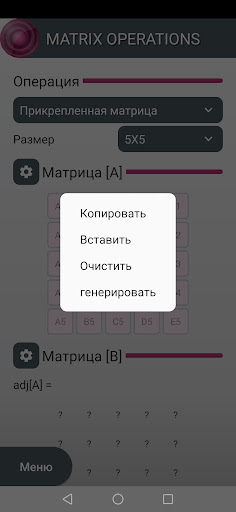 Matrix Operations - это приложение, которое выполняет математические операции с такими матрицами, как: