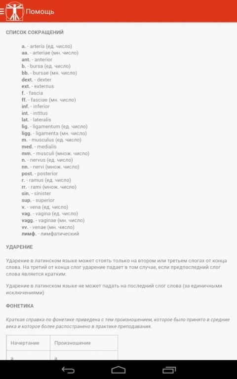 Подробные термины по анатомии человека – это полезная, важная, нужная, а ,главное, интересная информация, содержащаяся на просторах google play, здесь можно найти много важной и необходимой информации. В пособии собраны данные по анатомии за различные годы, наряду с классическими понятиями и выражениями, здесь можно встретить новейшие открытия и достижения в области этой сложной науки. Отдельного внимания заслуживает анатомия для андроид, это сложное научное пособие создано специально для того, чтобы получить самую подробную информацию о человеке, также, в данном пособии содержатся все необходимые схемы и таблицы, которые можно скачать в шпаргалки.