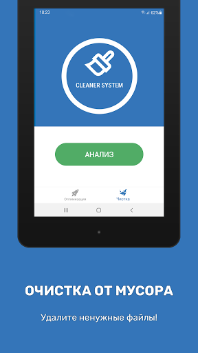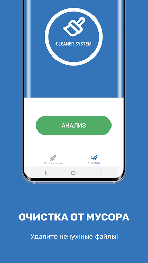 Cleaner System - мощный набор инструментов для оптимизации вашего устройства под управлением Android. Освобождайте место, удаляйте ненужные файлы, ускоряйте игры и оптимизируйте систему с помощью простых действий. Уникальная разработка позволит существенно снижать нагрузку на CPU, ускорять работу приложений, а также надежно защитит ваши данные от посягательств сторонних лиц. Cleaner System: Ускорение, Оптимизация & Очистка - отличный и рабочий инструмент для решения повседневных задач.