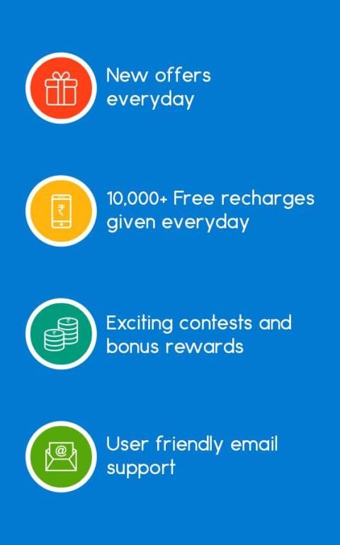 Это бесплатное приложение работает перезарядка на одно простое правило - заработать деньги путем загрузки приложений. Это означает, что вы получите бесплатные кредиты после загрузки любого приложения вы хотите. А также, играть викторины или смотреть видео, чтобы получить свободный остаток. Это очень просто и легко. Без каких-либо хлопот, вы можете пополнить свой мобильный или использовать кредиты для DTH топ-взлетов.
