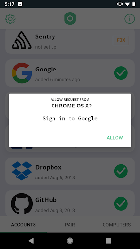 Krypton securely pairs with your computer so that you don't have to touch your phone for each sign-in. Optionally, enable One tap sign-ins for enhanced security.