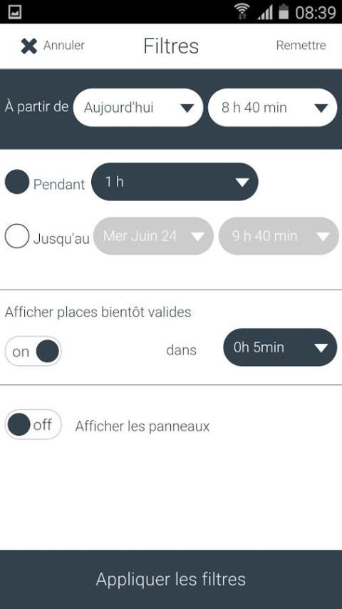 Одноместный Р отображается на карте, зеленые и синие линии сигнализации и уведомляет пользователя, прежде чем на следующий период запрещено.