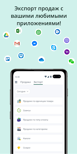 • Экспорт всех продаж в формате excel с помощью gmail, whatsapp, messenger, outlook, drive, dropbox или sms или любого другого приложения по вашему выбору