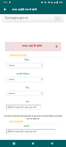 अगर आपके परिवार के किसी सदस्य के पास समग्र आईडी नहीं है तो वो सदस्य लिंक पर जाकर अपना पंजीकरण करवा सकता है और समग्र आईडी हासिल कर सकता है