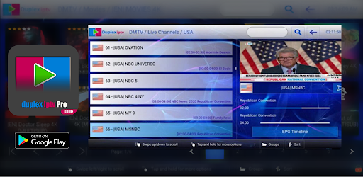 Duplex IPTV Play IPTV Приложение для участия в Smartphone, фильмы, телешоу, телешоу и другой контент на смартфоне с Duplex IPTV Box.