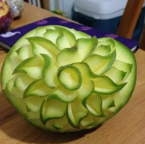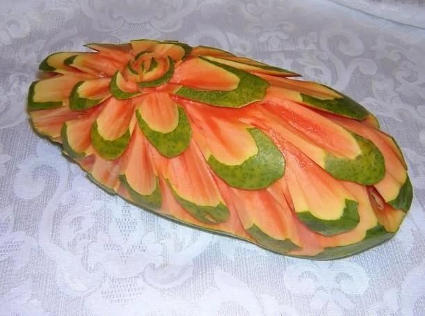 Фрукты Carving является одним из искусства резьбы этих плодов. как правило, подается в больших событий, как делает желтый рис конус. Это искусство является основой туризма Таиланда. Таиланд известен как один из лучших фруктов по странам-производителям в мире. так никто посторонний, если это искусство не очень развито в стране Таиланда. Обычно используемые фрукты включают дыни, арбузы, огурцы, апельсины, морковь, помидоры и другие. Не только из дерева и камня, которые могут быть вырезаны. Фрукты стал очень красивым и интересным при прикосновении рукой художников фруктовой резьбы. Ловко эти художники делают целые плоды превращаются в статуи высокой художественной ценности. Это фрукты Carving, искусство в подаче пищи с красотой, как правило, средства массовой информации используется круглый фруктово-образных фрукты и имеет мягкую текстуру. Украсить имеет специальные навыки, потому что в дополнение к требованию мастерства, терпения, и сильное воображение, также требует людей, которые имеют высокую художественную душу.