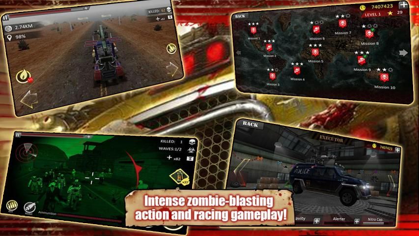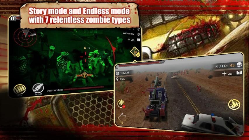 Здесь вы можете не только выбежать толпы зомби с автомобиля, но и смести зомби с пулеметом и ракетами.