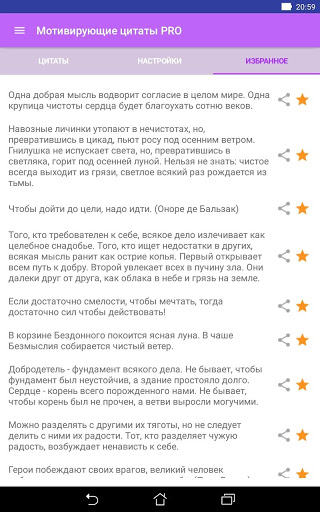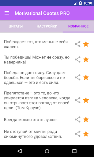 - Специально отобранные цитаты на любой случай (мотивация, занятия спортом, медитация, диета);