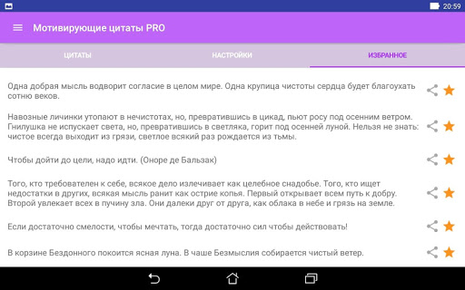 В обширном сборнике найдутся цитаты на все случаи жизни. Для удобства пользователя предусмотрены функции добавления в избранное