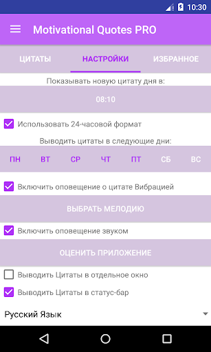 Благодаря наличию гибких настроек уведомлений, Вы можете установить подходящее именно Вам время отображения новых цитат!