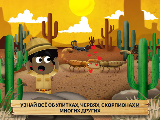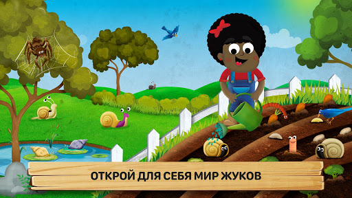 • Десятки обучающих игр: Создай своего жука; Классифицируй жуков; Узнай характеристики жуков; Найди пауков; Выкопай ямы, чтобы помочь червям.