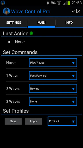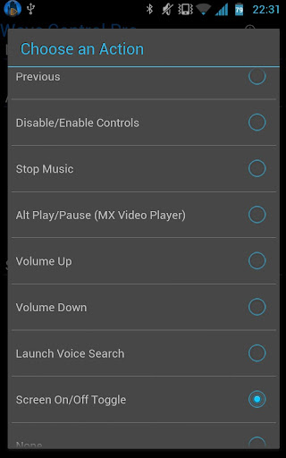 Действия для Pro: Stop, Fast Forward, Rewind, громкость вверх / вниз, запуск Google Voice Search, экран включение / выключение, Toggle UI, последние приложения, циклические приложения , Нет
