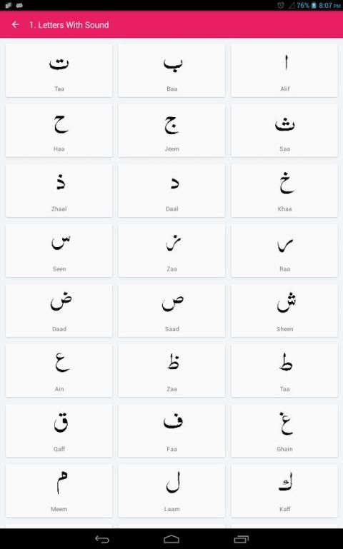 Это приложение охватывает изучение основной арабский язык для чтения Корана, и вы будете иметь возможность читать и писать арабский арабский в несколько дней, которые гарантированно.