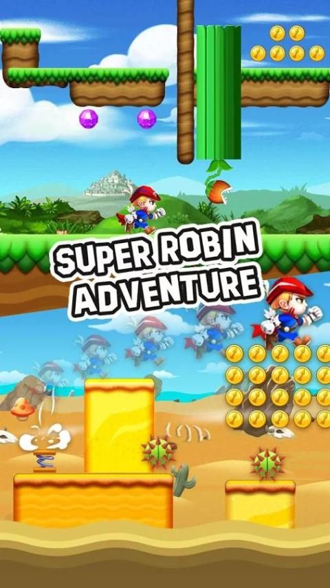 ★ В Супер приключение, супер Робин может повернуть назад, чтобы собрать больше монет или избежать атаки монстров со временем ограниченным.