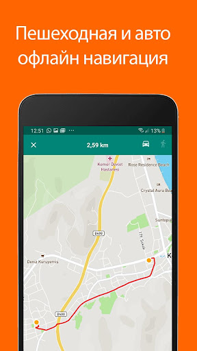 - Автомобильная и пешеходная GPS навигация в платной версии