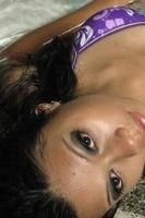 Decorate your phone's background with this sexy purple bikini-clad model.