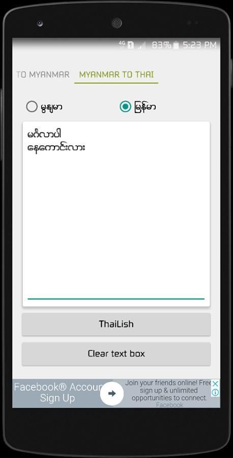 နွစ္ မ် ိဳး လံုး အ တြက္ နွစ္ ဘာသာ အျ ပန္ အ လွန္ ဘာသာ ျ ပန္ ဆို နိုင္ တ့ ဲ Мьянма Тайский Переводчик ေလး ကို တင္ ေပး လိုက္ ပါ တယ္.