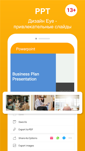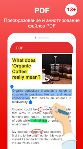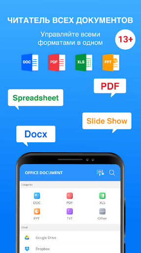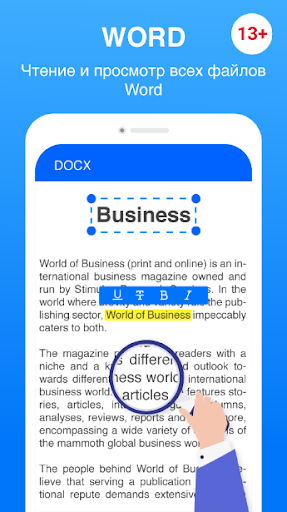 • Программа чтения документов для Android позволяет легко просматривать файлы Word, Excel, PowerPoint, Text и PDF.