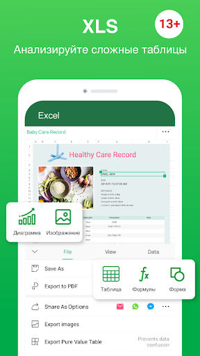 • Просмотр файлов xls, xlsx, txt в высоком качестве.