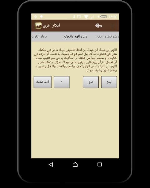 امكانية نسخ وارسال كل دعاء وذكر عبر تطبيقات التواصل.