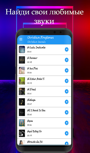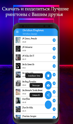 Это приложение имеет большую коллекцию лучших христианских музыкальных звуков и хитов для телефонов Android. Все песни были выбраны лично, так что вы можете загрузить лучшую коллекцию звуков и мелодий христианской музыки для своего телефона, вы можете скачать файл в формате mp3, поделиться звуками в социальных сетях или установить свою любимую песню на свой телефон Android. Вы можете установить его в качестве мелодий звонка, звуков SMS, сигналов будильника или уведомлений; Помните, что вы не сможете слушать звуки в автономном режиме, без подключения к Интернету или Wi-Fi, так как вам нужно скачивать mp3 файлы.