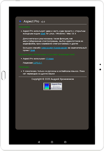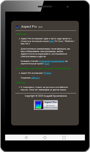 • Строит спектрограмму как в портретной, так и в альбомной ориентации экрана