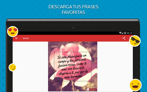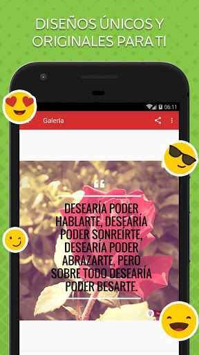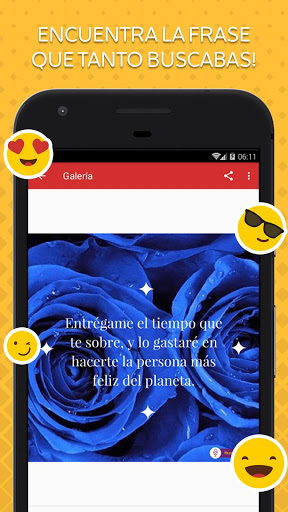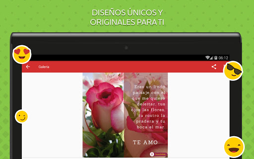С нашим приложением Rosas с любовными фразами вы можете насладиться изображениями с большим красочным, деликатесом и подлинной красотой, а также фразами, которые поступят непосредственно в сердце человека, которого вы любите.