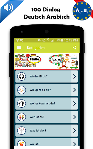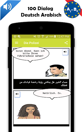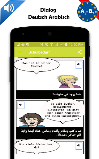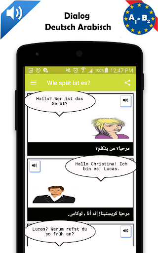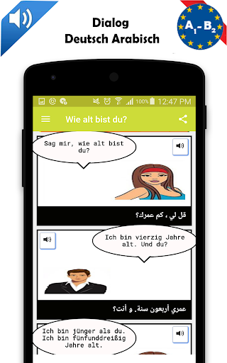 Deutsch arabisch Dialoganwendung zur Verbesserung ihrer Fähigkeiten in Deutsch und Arabisch.