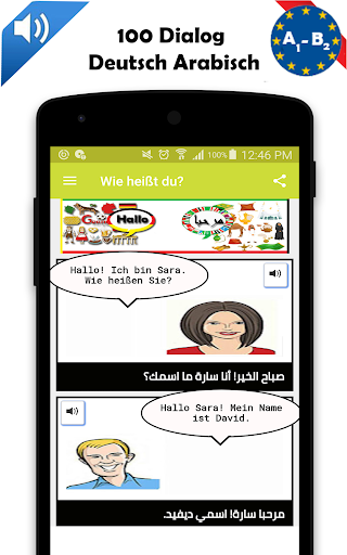 Der arabische und der deutsche Dialog, mit denen Sie Ihr Kommunikationsniveau verbessern können und Grammatik und Konjugation kennen und neue deutsche und arabische Wörter lernen.