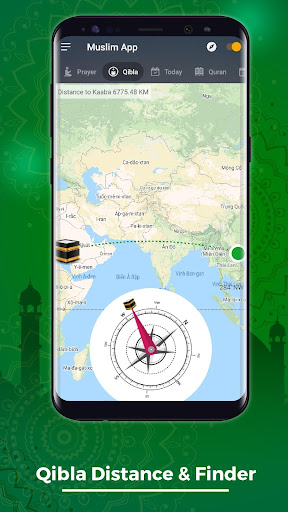 qibla) - qibla: Направляющая компас (направление молитвы mecca), измерить, как далеко от вашего местоположения до MECCA