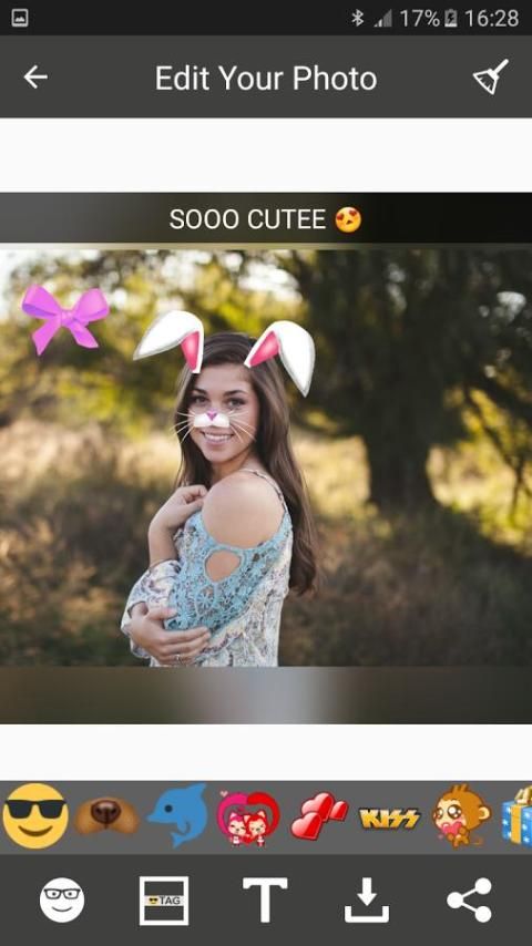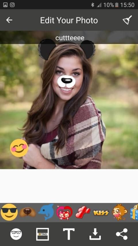 коллаж макетов. Emojis и фильтры в этом приложении могут быть выбраны и добавлены на селфи. Всего в нескольких шагах, живые эффекты покажут на рис. Плюс Многие фильтры и наклейки доступны, такие, как собачьи лицо, кот лицо, кролик лицо, радуга, глаз животных, маскарадные камеры, смайликов, слезы, текст и так далее. Более того, все они свободны.
