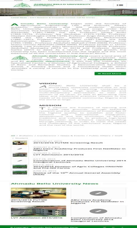 Enjoy the most popular apps here! 20,000+ users downloaded ABU Zaria latest version on 9Apps for free every week! The app is superior that can be used with any of the mobile type. This hot app was released on 2015-10-09. Find out more android software you're looking for at 9apps.com