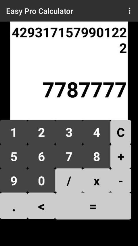 Теперь Рассчитайте с легкостью с нашей собственной Easy Pro Calculator.One Лучшего Калькулятор с простым пользователем interface.The Калькулятор предназначен, чтобы сохранить ваши усилия и сделать вашу жизнь easier.It содержит четыре основные функции, которые являются столпами любого Calculation.Equipped с Кнопка Clear и Delete.Please поддерживаем и делиться с друзьями и Family.Easy Pro Калькулятор является лучшим примером простоты на это лучше.