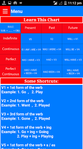 This app helps you to learn the Tenses in a very easy and effective way. All the topics in this app are covered in a most simple way.
