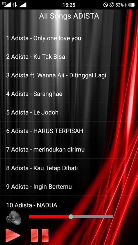 Semua Lagu ADISTA yang terbaru , terlengkap , terpopuler , bahkan lagu lama dan lagu favorit bisa anda dengarkan di aplikasi ini . karena aplikasi ini di buat untuk penggemar ADISTA dan penggemar lagunya . anda hanya bisa mendengarkan lagu streaming di aplikasi ini . aplikasi ini tidak menyediakan download lagu karena dapat melanggar hak cipta
