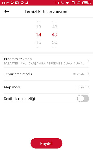 Arçelik Robot App также предоставляет функции управления, такие как управление устройством, функция позиционирования, функция очистки и состояние оборудования.