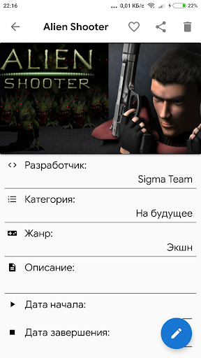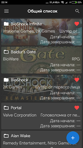 Приложение для создания списков интересных Вам игр! Добавляйте запланированные, пройденные или текущие игры. Благодаря сортировке по жанру и списку избранных записей - Вы быстро найдете любую игру!