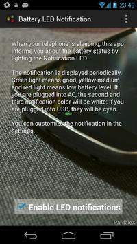 This app periodically lights up the notification LED and informs about the battery level.
