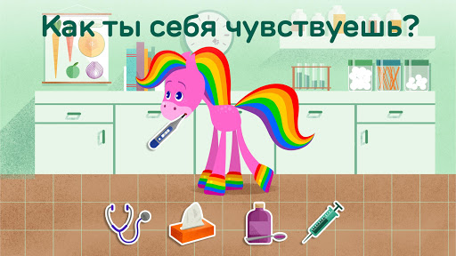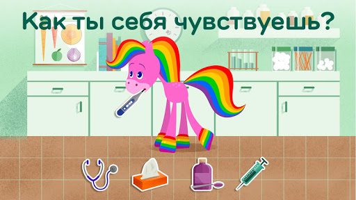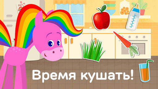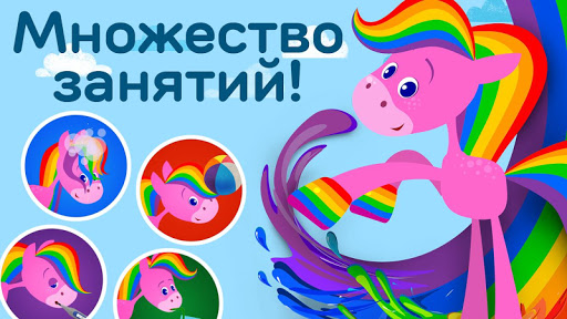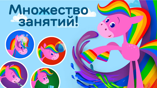 Скачите верхом за развлечениями любителей животных с этим очаровательным приложением для детей! Благодаря четырем различным режимам игры, ваш ребенок сможет открыть для себя различные способы ухода за Радужной Лошадкой: помочь её принять ванну, покормить её, отвести её к ветеринару и поиграть с ней. Моя Rainbow Horse позволит вашему малышу почувствоватьрадость от заботы и ухода за кем-то, помогая развивать эту важную эмоциональную часть.