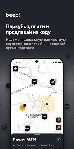 Поиск ближайшего муниципального или частного паркинга, построение маршрута, оплата стоянки, а также вся необходимая информация о стоимости, режиме работы и дополнительных услугах прямо в приложении.