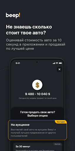 Не знаешь, сколько сейчас стоит твое авто? Получи мгновенную оценку стоимости своего автомобиля прямо в приложении. С Beep! - это бесплатно.