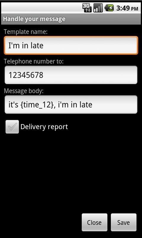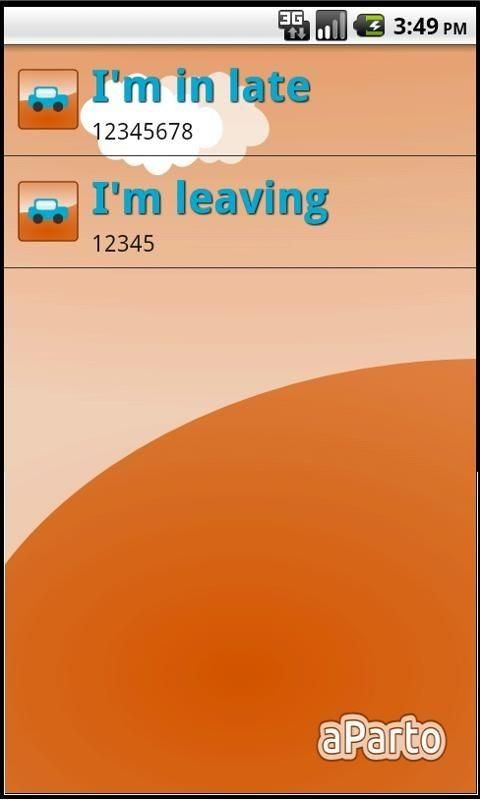 Send configured SMS to advise about something, for example, to let your girl friend know each time that you are leaving home to meet her in a simple click. Or to advise that your late at work. ;-)