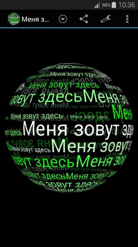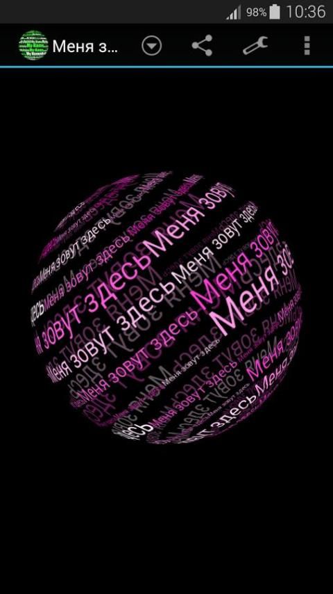 Великий обои с вами будет видеть ваше имя, имена или текст, который вы хотите с 3D-зрелищного эффекта. Вы можете изменить цвет текста, дважды щелкнув на экране, а также вы можете изменить его размер, увеличив ее пальцами. Также вы можете изменить текст с помощью значка в верхнем левом углу на главном экране.