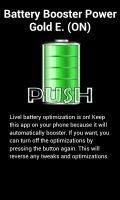 Battery Power Booster a simple application to solve your problems with excessive consumption of battery. With a simple click, automatically this simple and useful application manages your applications and functions, so as to consume less battery power. After installing the application you just press on the battery and then automatically activate the savings to make it work you need to keep the green icon. Your application can contain icons / push, this is essential to help us in our work of developers.