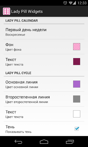 "Lady Pill Widgets" содержит 2 виджеты для "Lady Pill Reminder", которые отображают на рабочем столе вашего мобильного телефона всю необходимую информацию о принятии вами противозачаточных таблеток