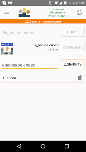 Первое (наверное и единственное) приложение для просмотра позиций ваших приложений в google play маркете, по заданным ключевым словам.