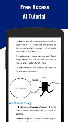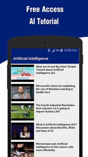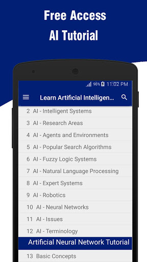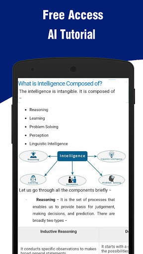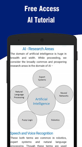 Это приложение предоставляет вводные знания о искусственном интеллекте. Это приедет к большой помощи, если вы собираетесь выбрать искусственный интеллект в качестве предмета курса. Вы можете кратко знать о районах АИ, в которых исследование процветает.